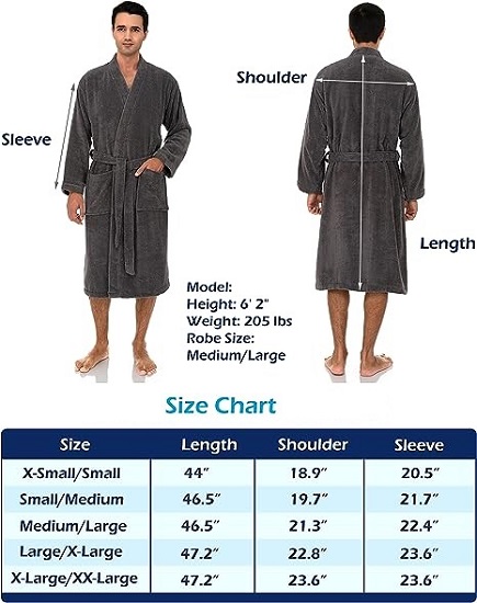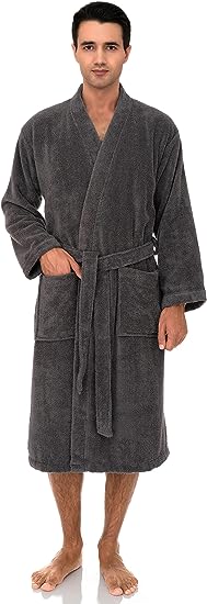Perfect Gift - Men's luxury terry cloth kimono style bathrobe is the perfect gift for your loved ones. Excellent absorbency and soft plush. It is made from terry cloth cotton fabric. This bathrobe is soft, absorbent, and comfortable.